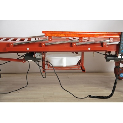 В процессе производства электрокровати применялись качественные материалы – высокопрочный пластик, натуральное дерево, металл с антикоррозийным покрытием. Предусмотрены бесступенчатая регулировка положения секций, противопролежневая функция, встроенное туалетное устройство и стойка-держатель для инъекций.